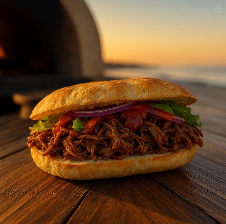 Pulled pork, tangy slaw, and sharp cheddar wrapped in fire-blistered panuozzo. A blue-collar classic that tastes like long days and late-night laughter. Inspired by Ian Tyson’s son “Summer Wages” .