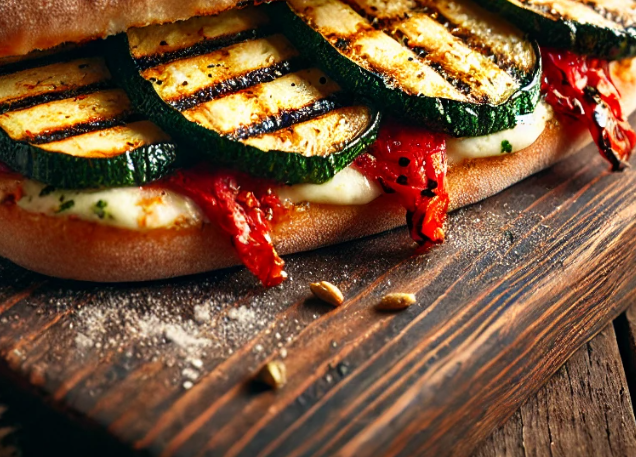 Fire-melted garden medley with veggies galore: mozzarella, roasted garlic, grilled zucchini and roasted red peppers, caramelized onions, and fire-kissed hummusβ€”finished with a drizzle of olive oilβ€”a smooth, laid-back soon-to-be classic filled with ingredients that never goes out of style.